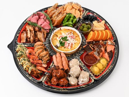丹波黒豆、オリーブ、数の子、伊達巻、銀鮭の三ツ星醤油塩麹焼き、栗きんとん、イクラ、酒井赤豚と二宮塩麹の肉焼売、尾鈴豚粗挽きウインナー、肉団子甘酢餡、帆立の煮物、海老の煮物、セイアグリー健康卵の千草焼き、県産鶏の照り焼き、国産牛のローストビーフ、春巻き、国産枝豆、海老天、カニの豆乳グラタン