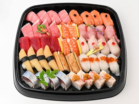本鮪、生サーモン、海老、白身魚、ズワイ蟹、イカ、松井泉煮穴子、自家製〆鯖、特選数の子、帆立貝柱